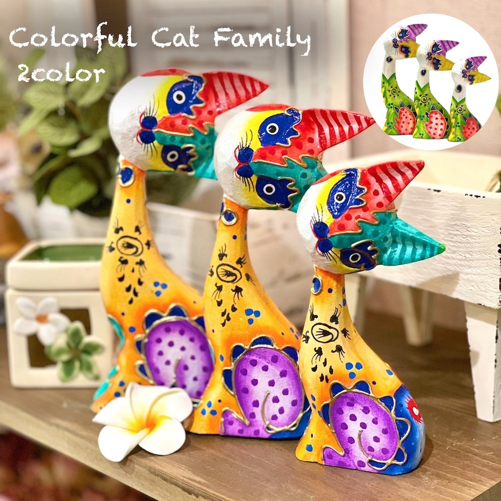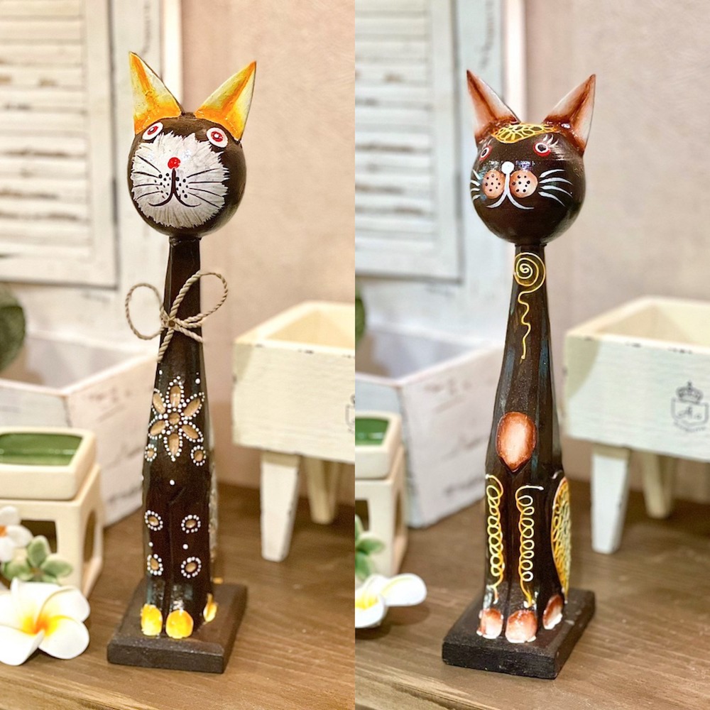 木彫りで抽象的に表現されたおしゃれな猫さん家族♪