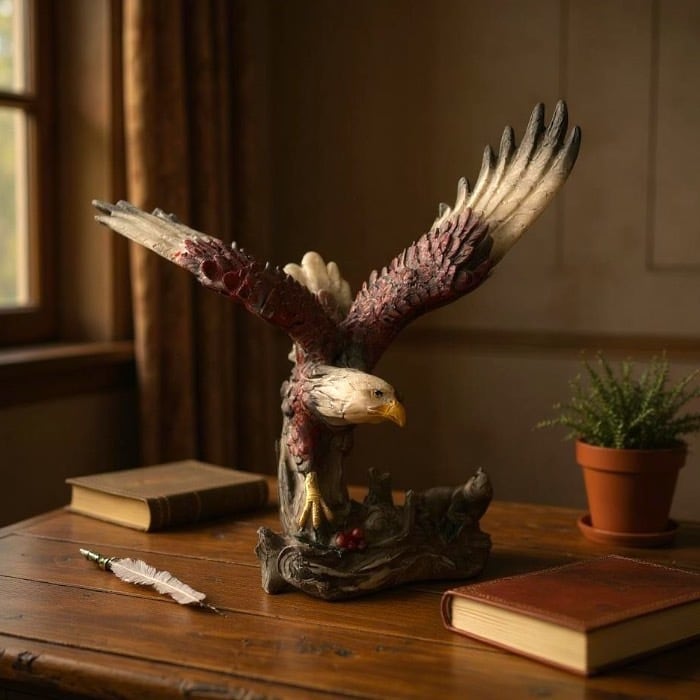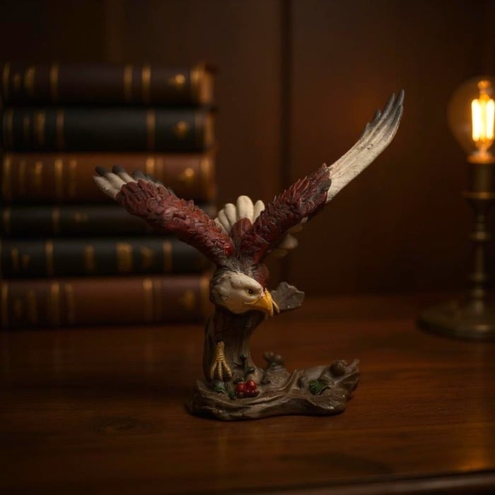 このイーグルのオブジェが、あなたの日常に特別なひとときをもたらしますように。リビングやカフェに飾ることで、個性的な空間を演出し、アートを楽しむひとときが得られます。洗練されたデザインは、インテリアの一部としてだけでなく、あなたの冒険心や自由な精神を象徴する大切なアイテムとなることでしょう。
