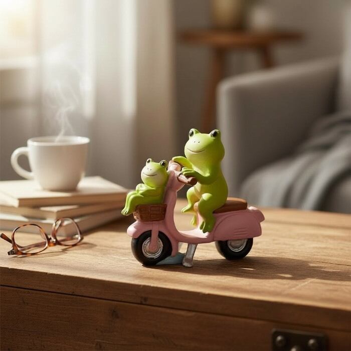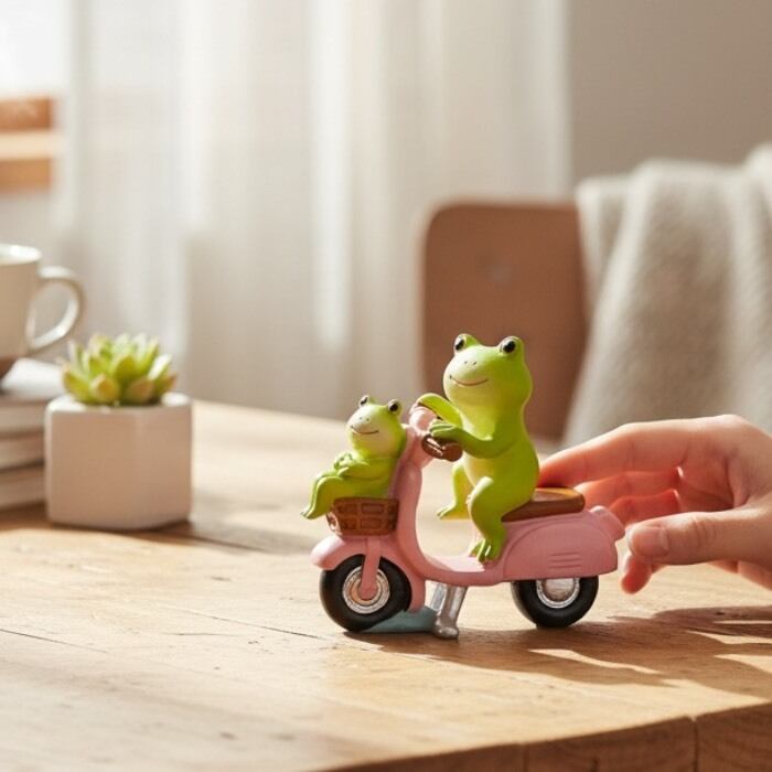 このミニチュアアニマル ぽっちゃり蛙の親子バイク乗りで、あなたのお部屋に可愛らしさと温かみをプラスしてください!