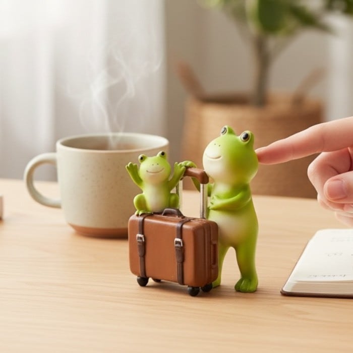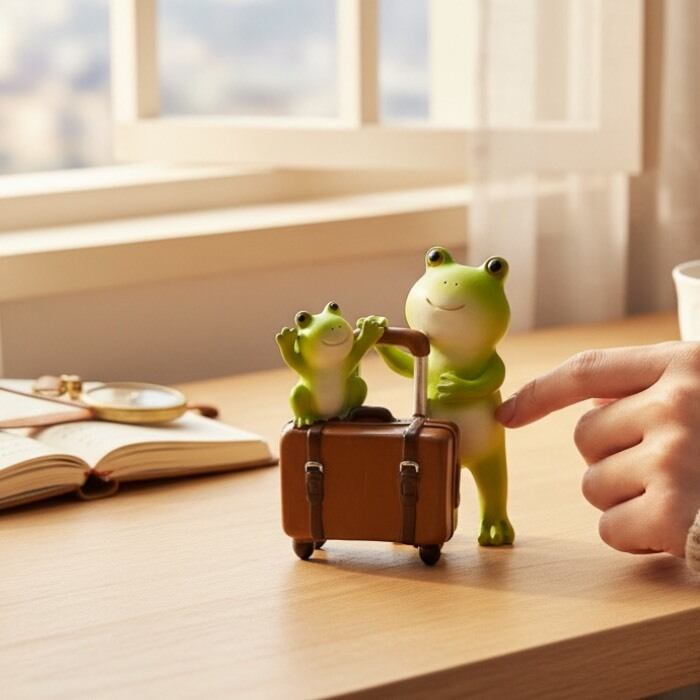 この愛らしいミニチュアアニマルは、ぽっちゃり蛙の親子が旅行する姿を描いたユニークなデザインが特長です。手のひらサイズながらも、細部まで丁寧に仕上げられたこの置物は、リビングやデスクに置くだけで、心和む雰囲気を演出します。視覚的にも触覚的にも癒しを感じさせ、見る人を虜にすることでしょう!