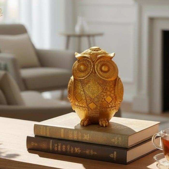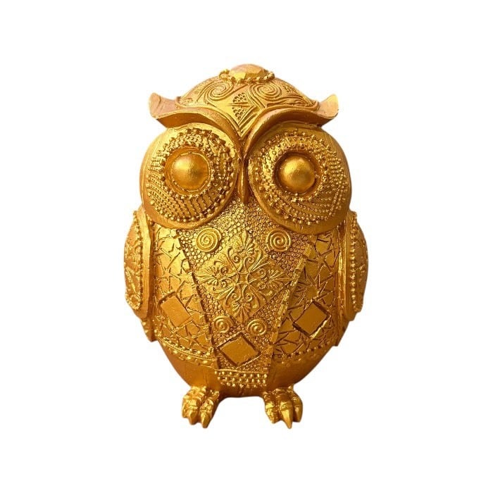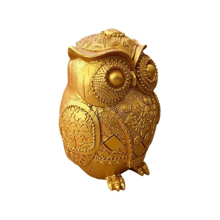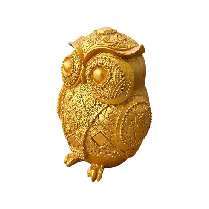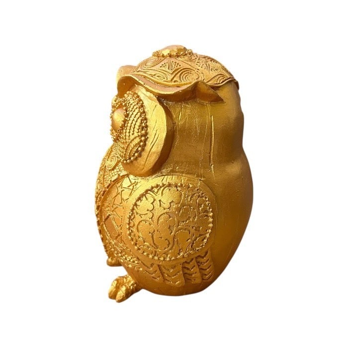 このゴールドのフクロウの貯金箱は、アンティーク風のデザインとレトロな魅力が特長です!