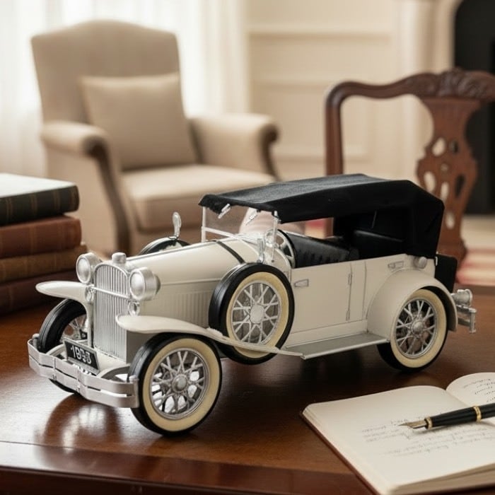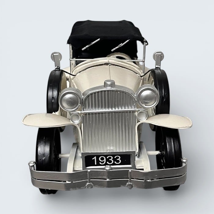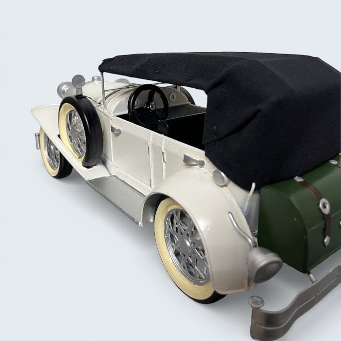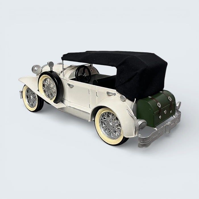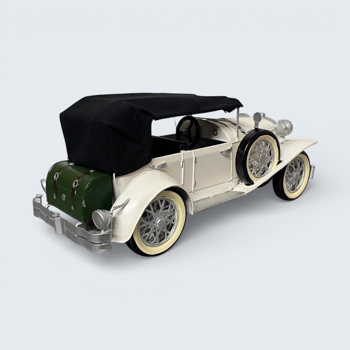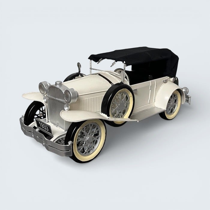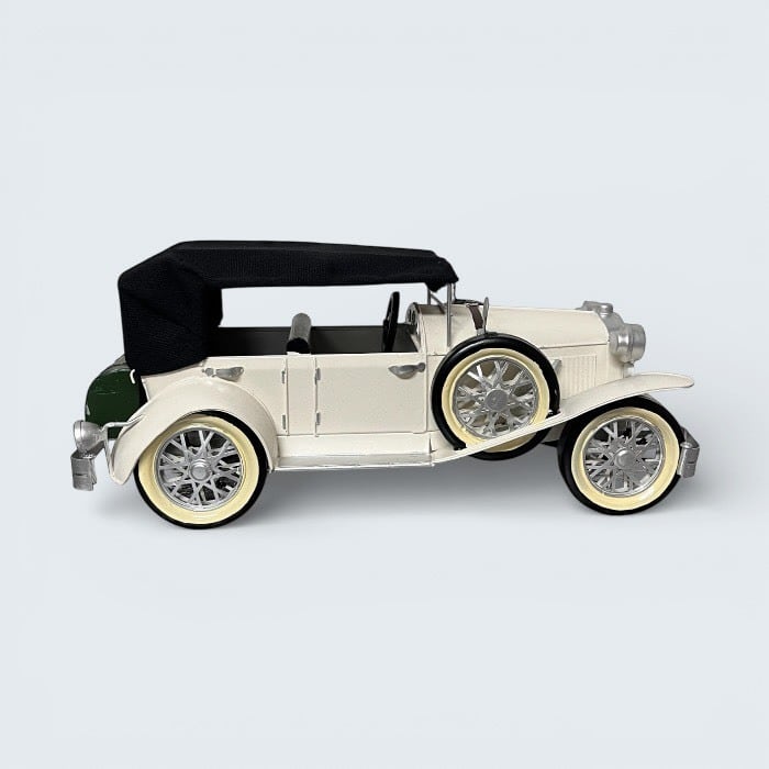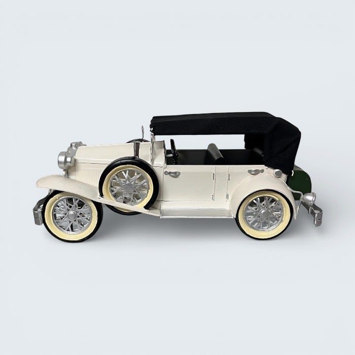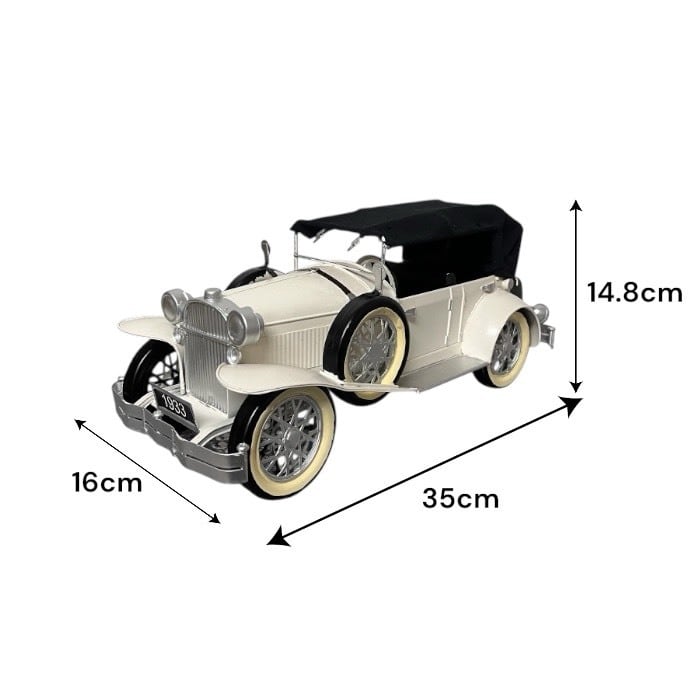 このブリキのクラシックカーは、ホワイトの美しいデザインとアンティークな風合いが特長です!レトロな雰囲気が漂い、カフェや自宅のインテリアに優雅なアクセントをもたらします。