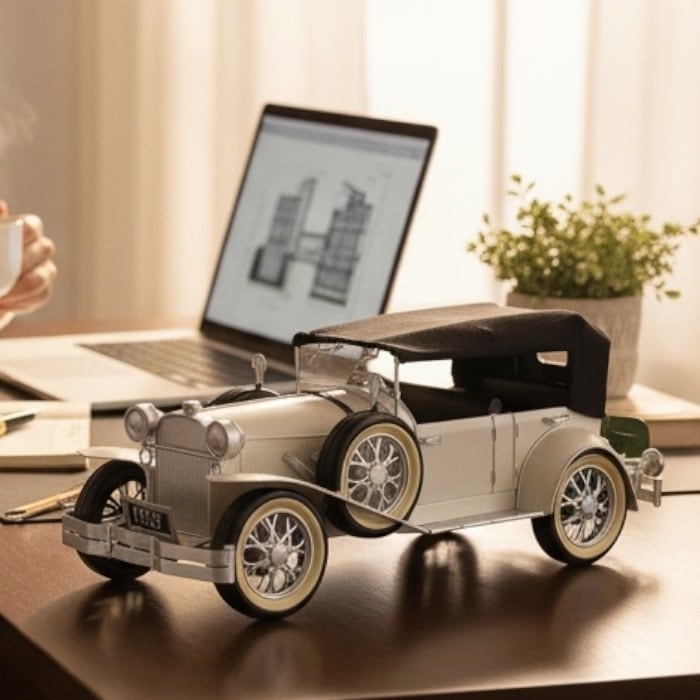 このクラシックカーが、あなたの空間にストーリーを加え、心に残る瞬間を演出します。