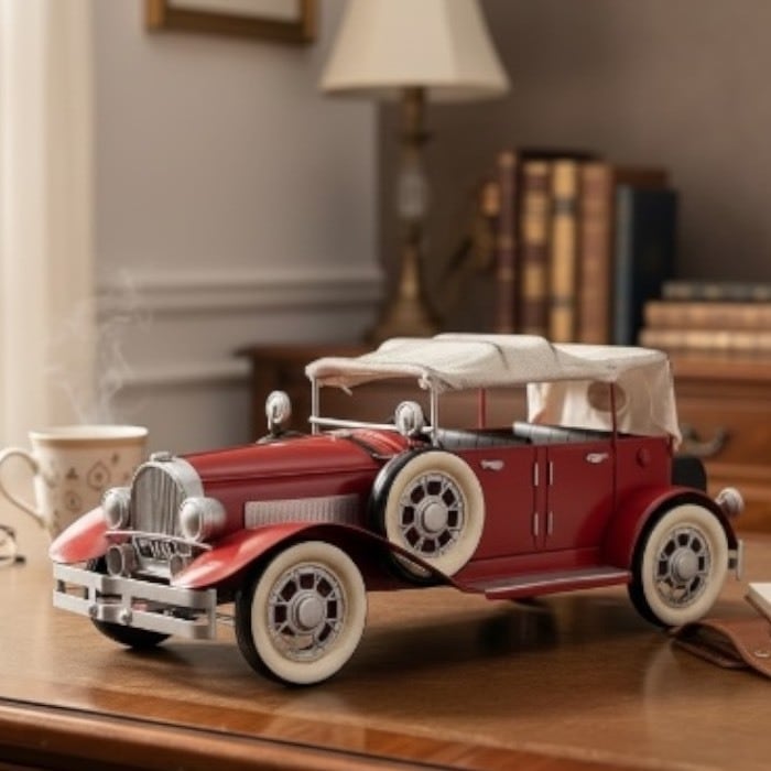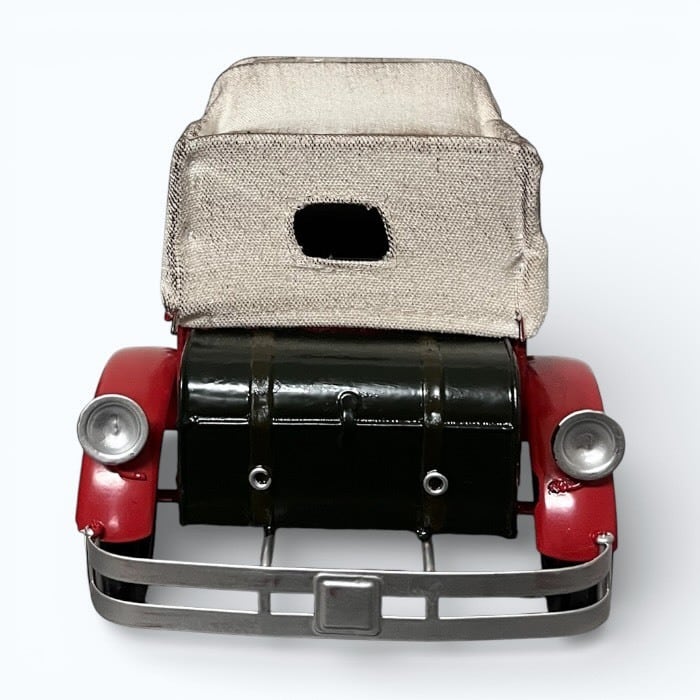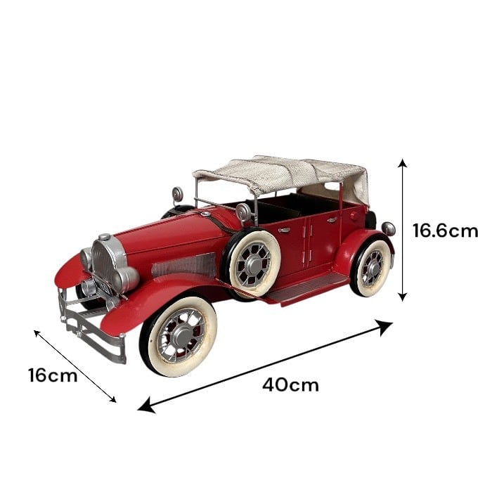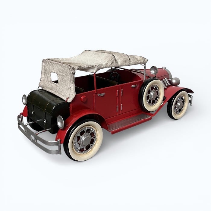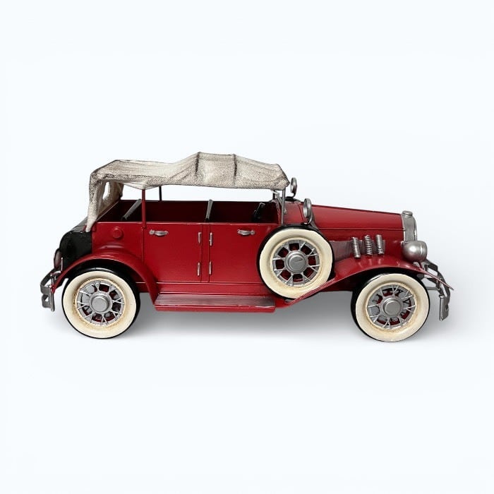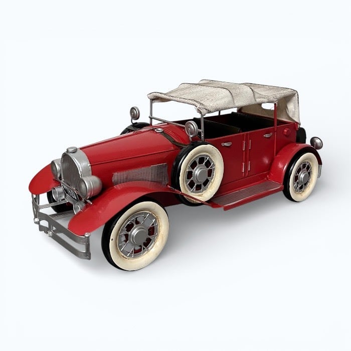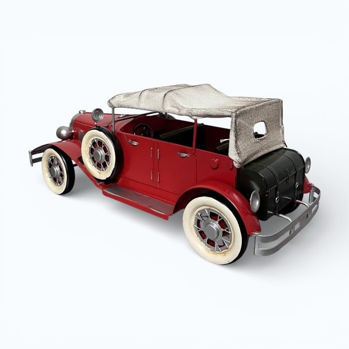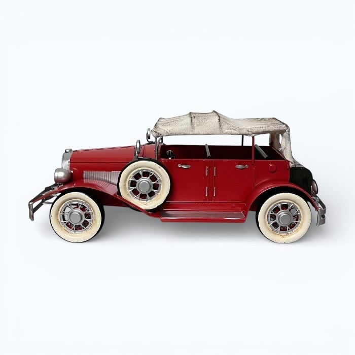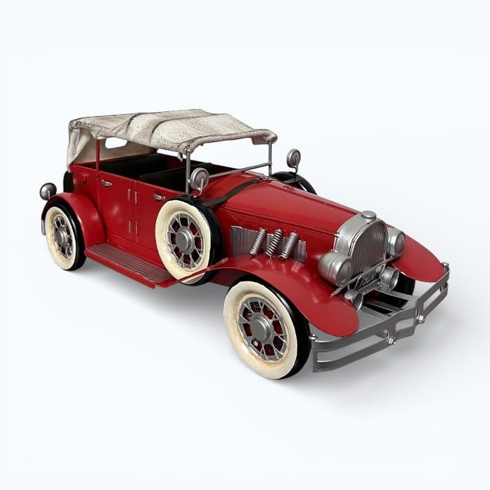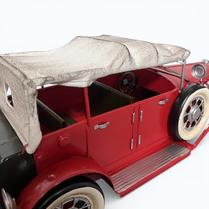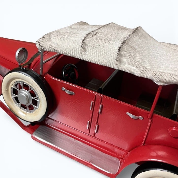 このブリキのクラシックカーは、情熱的な赤色とアンティークなデザインが特長です!レトロな魅力が詰まったこのアイテムは、カフェや自宅のインテリアに素敵なアクセントを加えます。