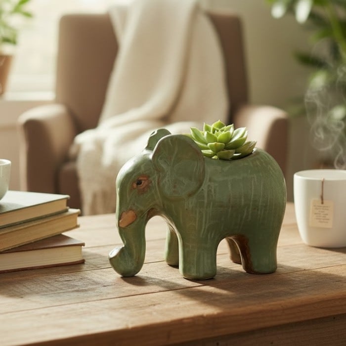 このかわいらしい象の形をしたアニマルポットは、あなたのガーデニングやインテリアに楽しい雰囲気をプラスするアイテムです!そのユニークで愛らしいデザインが際立ち、視線を引きつけること間違いなしです。