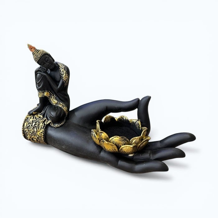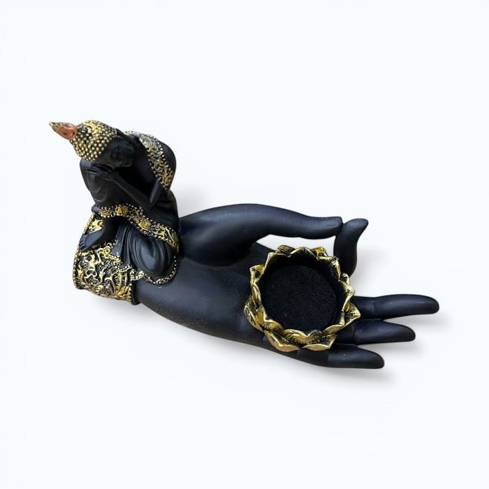 この仏様と印相の手指の形をモチーフにしたデザインが特徴のキャンドルホルダーは、あなたの空間にリラクゼーションと癒しを届ける素敵なアイテムです!