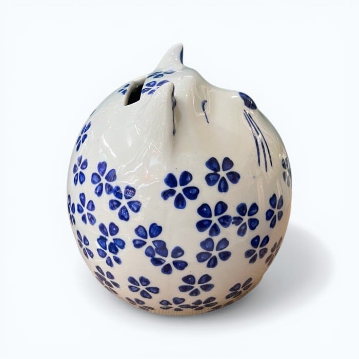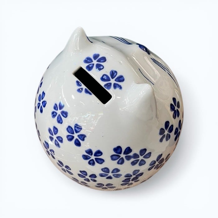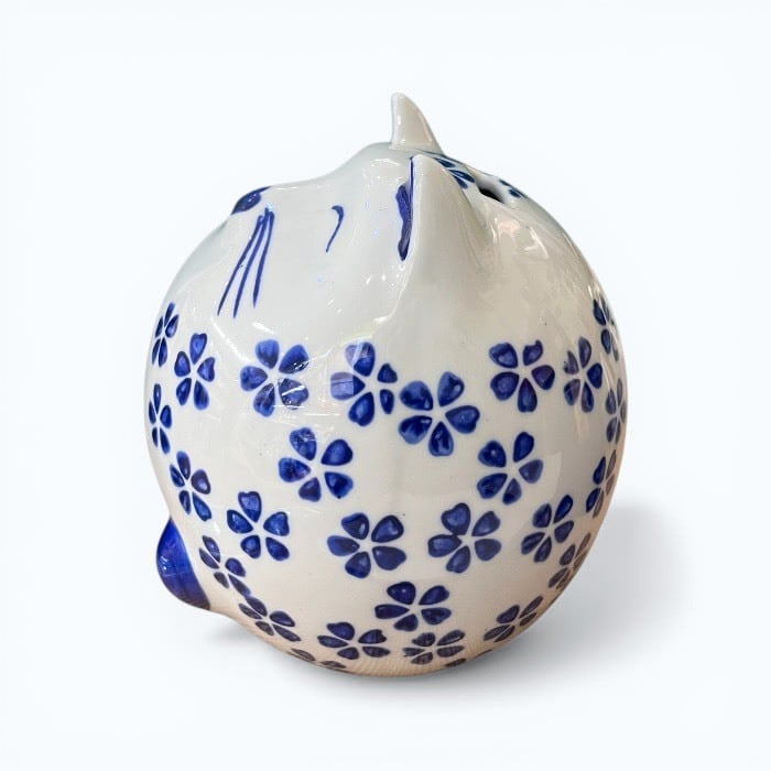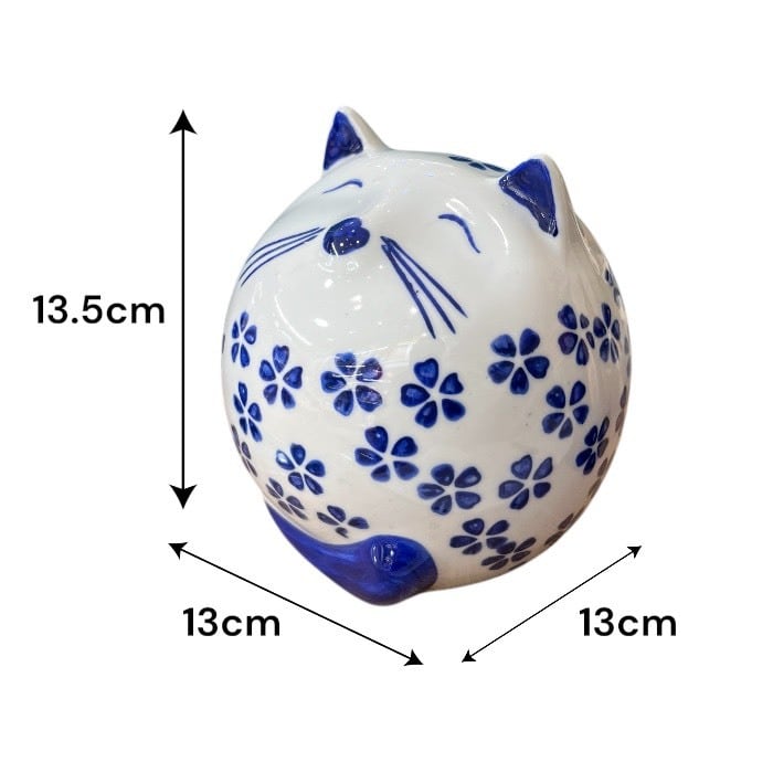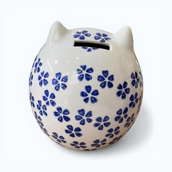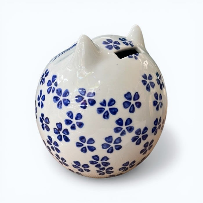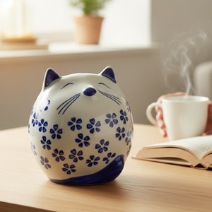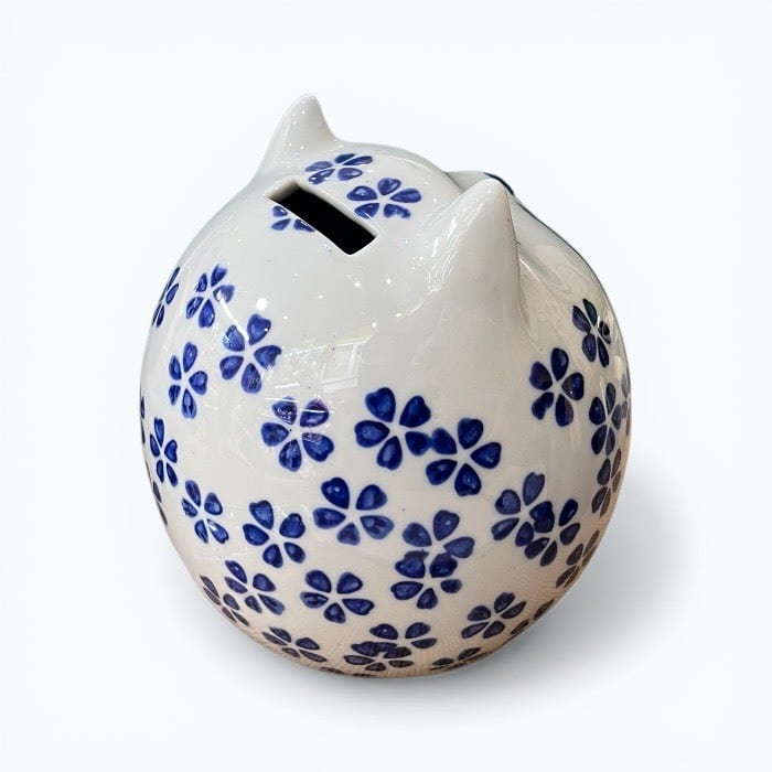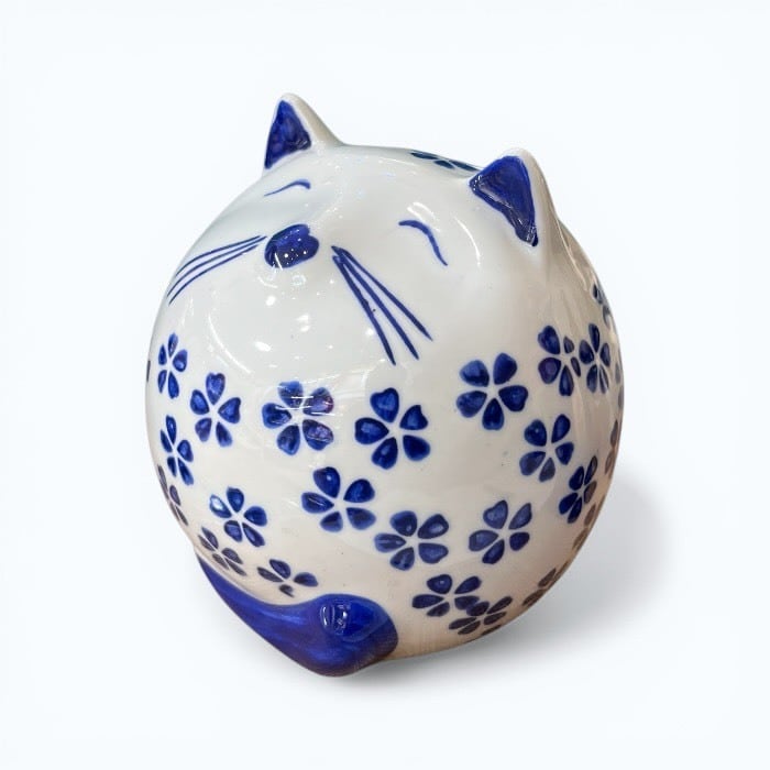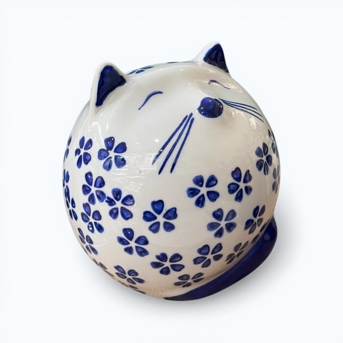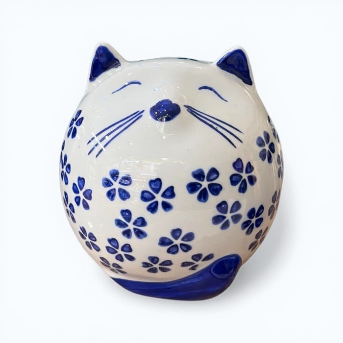 こちらの桜猫 貯金箱は、あなたの生活空間に温かみと幸運をもたらす愛らしいアイテムです!美しい青色の陶器製で、シンプルでありながらも優雅なデザインが特徴です。