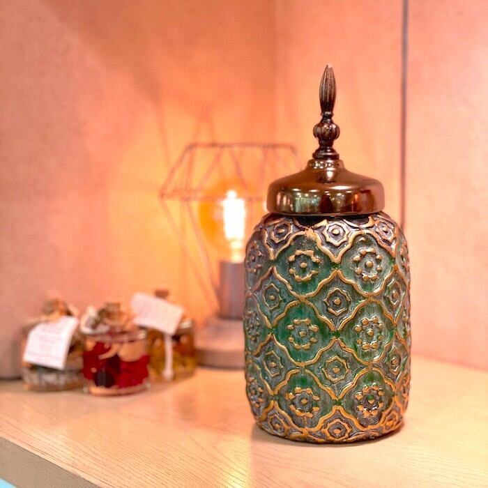 キャンディボックス 小物入れ グリーンフラワー F18046 高さ31cm お菓子入れ おやつ入れ アクセサリーケース 花瓶 レトロ フラワーベース ギフト プレゼント