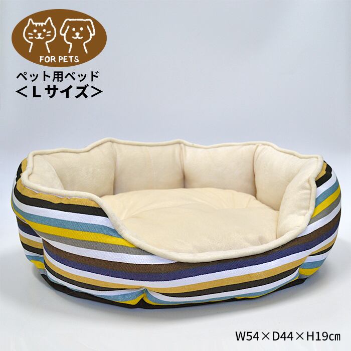 ペット用ベッド ボーダー柄 083-009 Lサイズ あったか 犬 猫 うさぎ ボア 布 やわらか 安全 クッション 睡眠 室内 3サイズ しましま