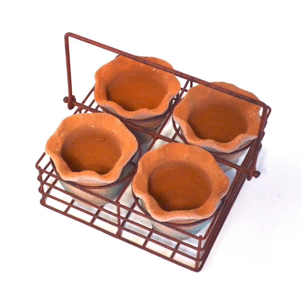 ワイヤーホルダー付き4テラコッタポット AZ-1554 ワイヤー バスケット ガーデニング ミニポット