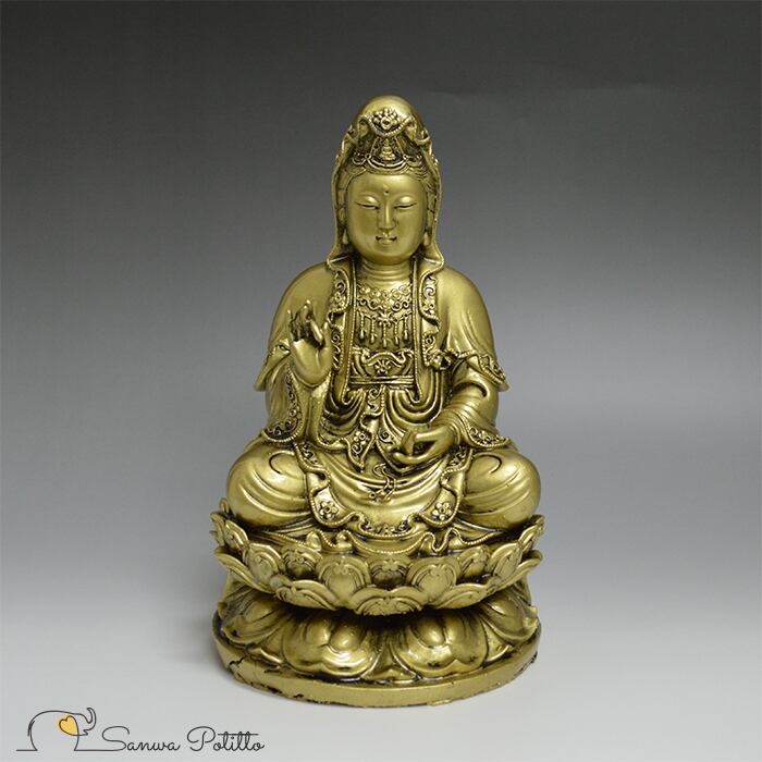 観音菩薩様 大 高さ25.5cm S19018 金 ゴールド 自在菩薩 観世音菩薩 観音様 観自在菩薩 救世菩薩 般若心経 仏様 銅像 インテリア 置物 オブジェ