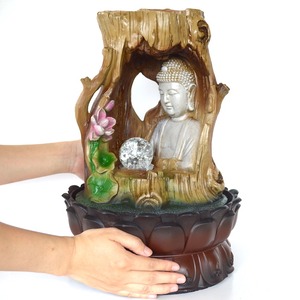 流水のオブジェ 縁起物 aq21053 木 自然 仏 仏様 置物 神仏 金運アップ 開運 商売繁盛 噴水 インテリア噴水 卓上噴水 ライト付き