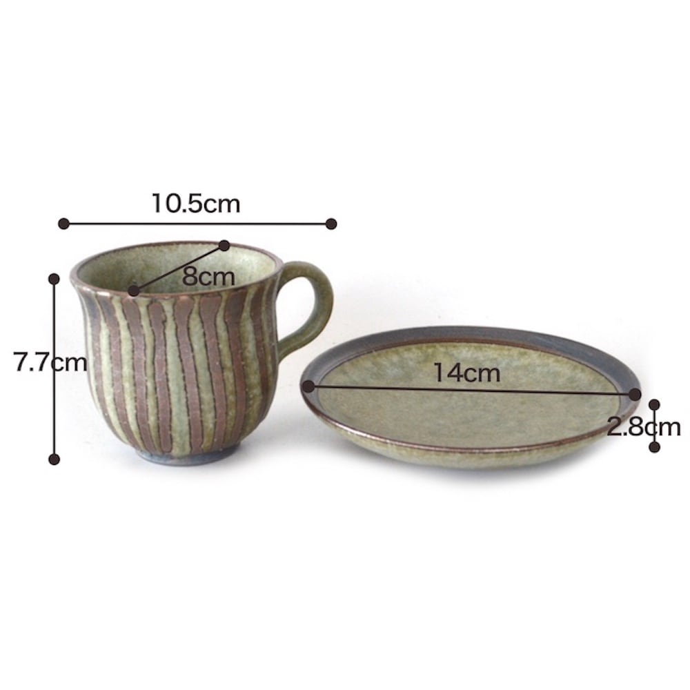 萌黄ストライプコーヒー碗皿 w308-04 ソーサー セット カップアンドソーサー カップ&ソーサー ティーカップ 信楽焼 手作り ギフト 贈り物 洋食器 食器 焼き物 陶器