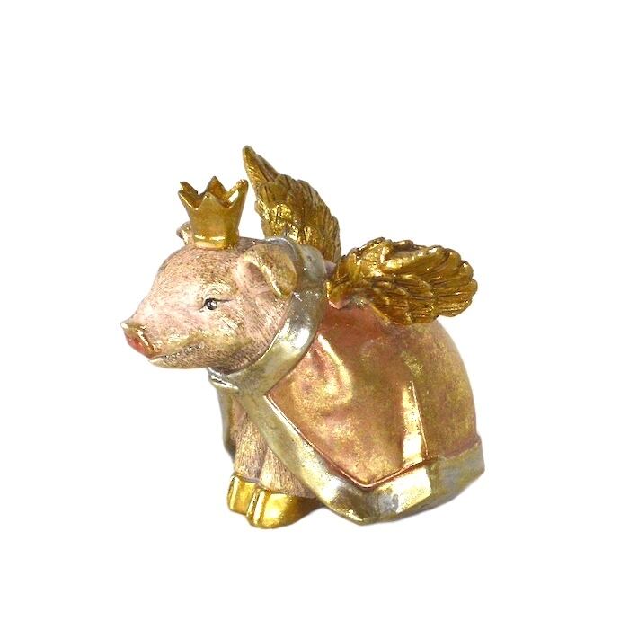 エンジェルピッグ マント 37360 置き物 天使 羽 かわいい オブジェ こぶた ミニブタ マイクロブタ マント ピンク ゴールド アンティーク