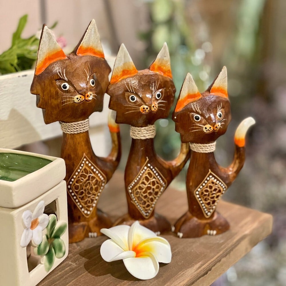 木彫りの猫 ファミリー 3匹セット hl16003 大中小 かわいい ナチュラル インテリア バリ バリ島 木製 置き物 手作り ハンドメイド