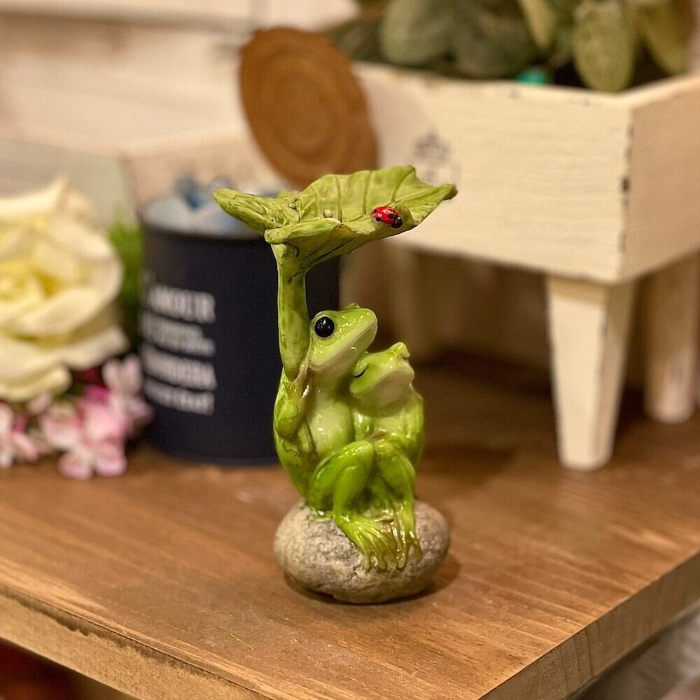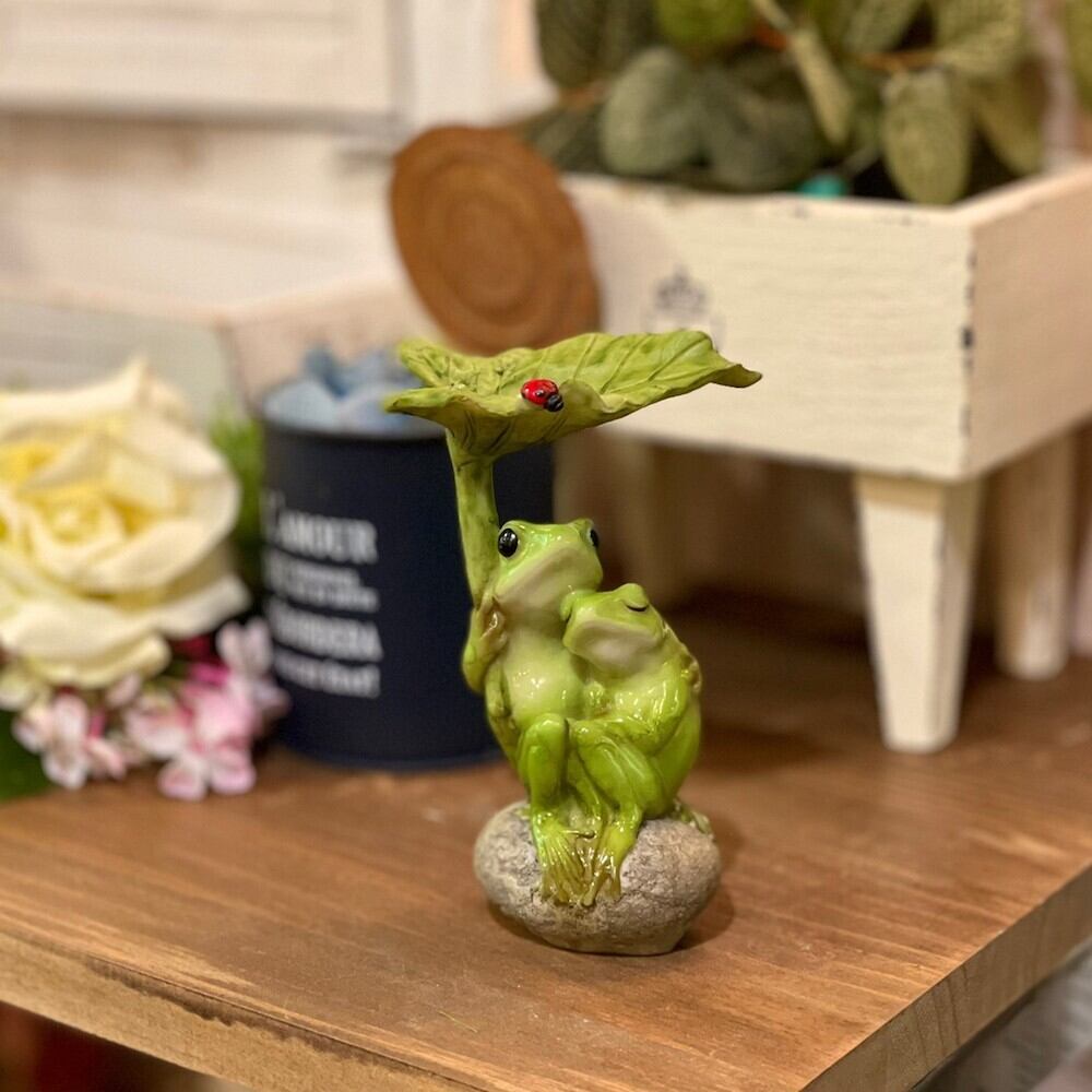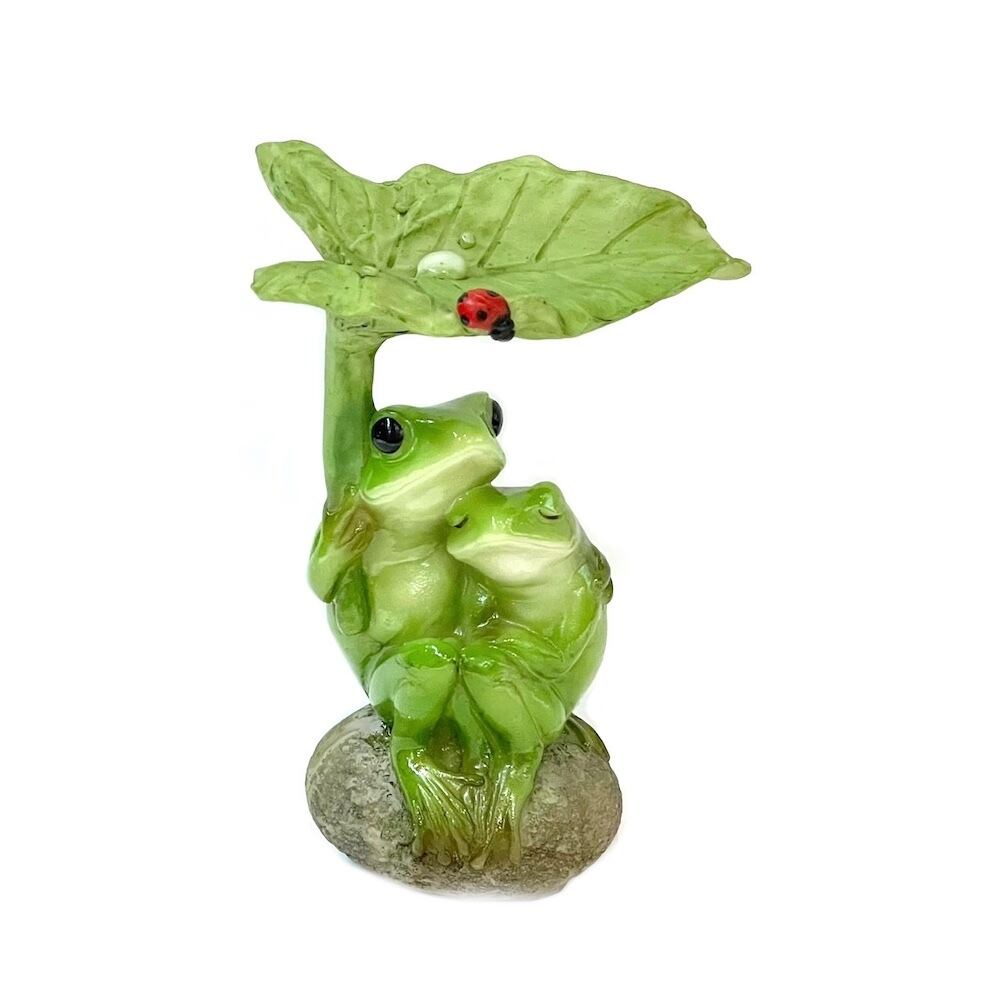 葉っぱ傘蛙 かえる カエル アマガエル てんとう虫 相合傘 カントリー 置物 置き物 オブジェ ギフト ミニチュアアニマル 贈り物 梅雨 縁起物 82788 レトロ アンティーク風 インテリア ガーデニング プレゼント かわいい ユニーク フィギュア リアル コレクション 手の平サイズ