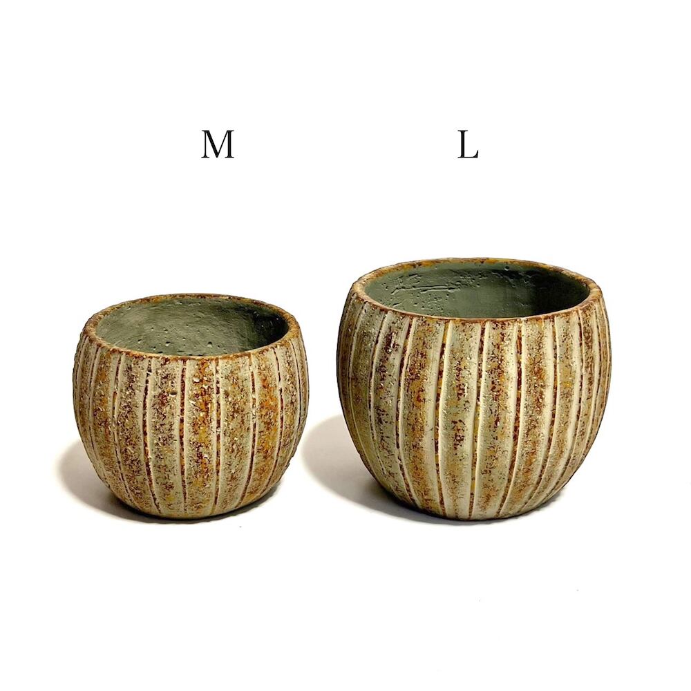 リーニュ・ボールポット L 植木鉢 セメント ポット ストライプ 多肉 サボテン コーデックス 塊根植物 直植え ガーデニング 観葉植物 直植え可 AB-GG-503