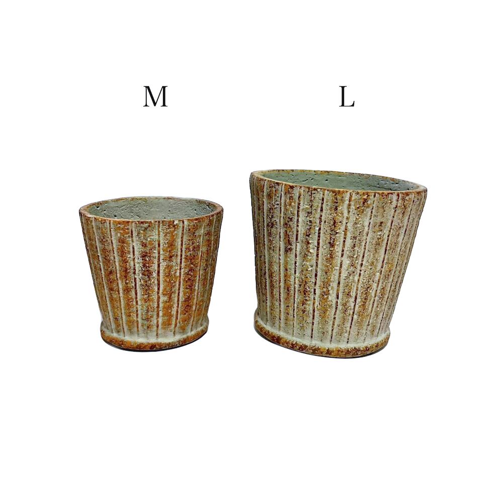 リーニュ・ラウンドポット M 植木鉢 セメント ストライプ 多肉 サボテン コーデックス 塊根植物 直植え ガーデニング 観葉植物 直植え可 AB-GG-505