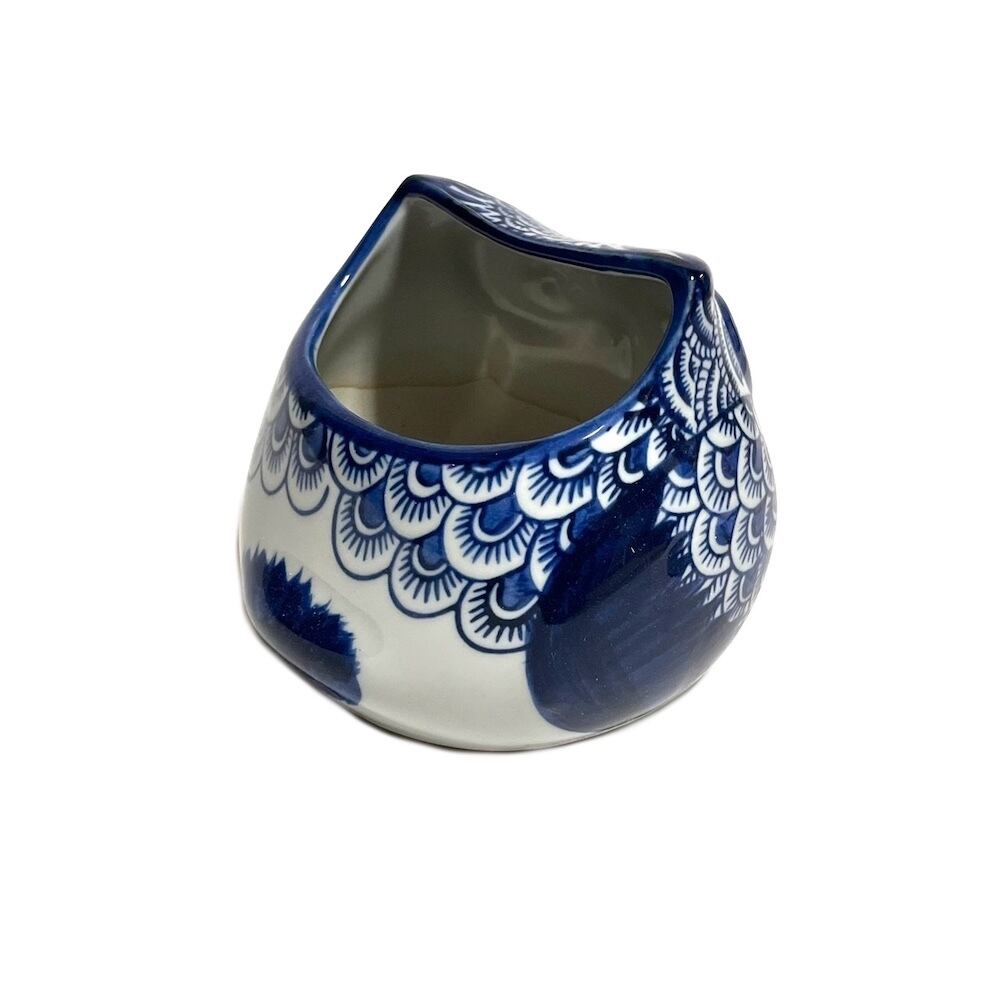 植木鉢 受け皿付 フクロウ植木鉢 梟 ふくろう 青花 陶器 和風 多肉植物 寄せ植え 観葉植物 塊根植物 コーデックス カクタス サボテン LH22030509