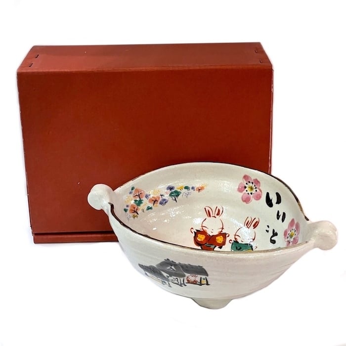 華うさぎやわらか鉢 tf-17 茶碗 うさぎ 手描き ギフト かわいい プレゼント イラスト 絵皿ほのぼの 癒し 和風