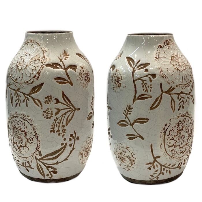 フルール chubbyvase ks-pta-195 花柄 茶色 ブラウン ホワイト アンティーク風 ナチュラル インテリア フラワーベース 花瓶 シンプル 花