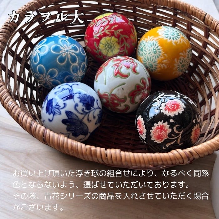 カラフル 浮き球 小3個セット アソート 浮き玉 陶器 柄 花手水 和風 納涼 ボール 浮き玉 池 ビオトープ めだか鉢 インテリア 和風 金魚鉢 オーナメント 飾り フローティングボウル