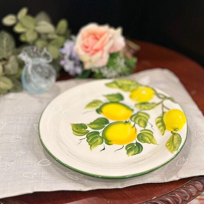 美しくレモンが描かれたイタリア製のラウンドディッシュ。