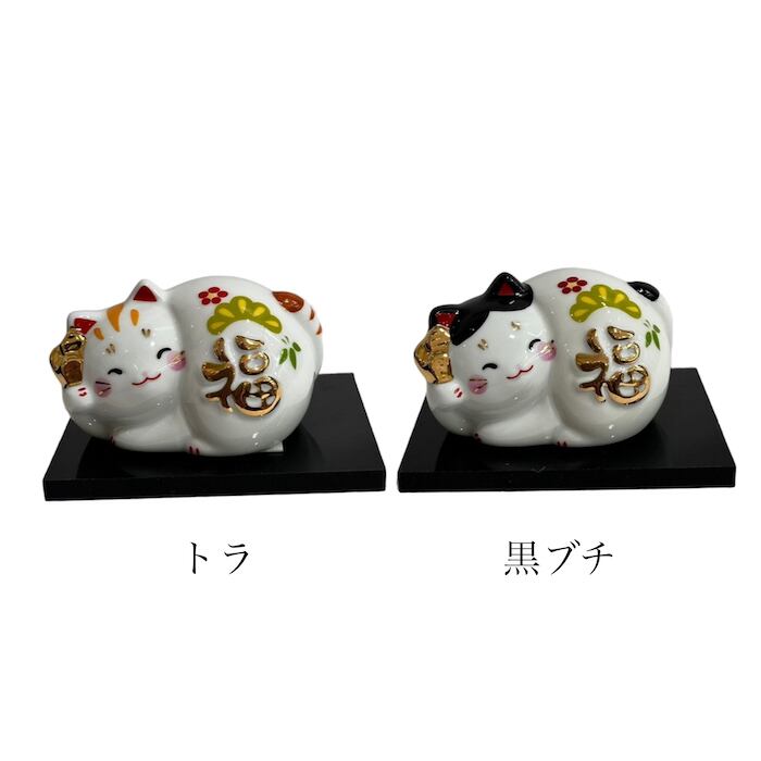 福丸ネコ トラ クロブチ 猫 置物 和雑貨 インテリア オブジェ 縁起物 プレゼント かわいい 玄関 インテリア 018-0280