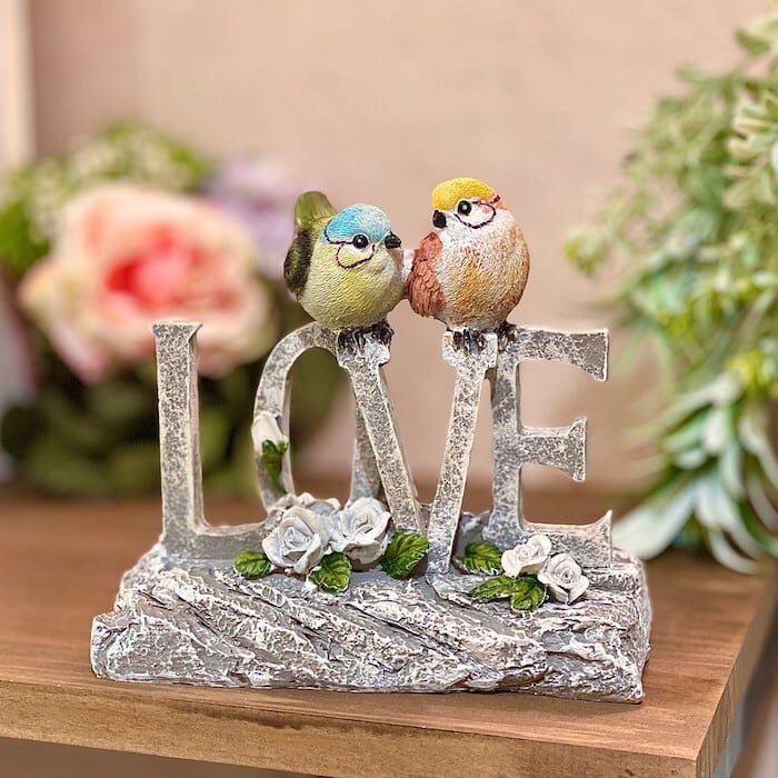 ことりのガーデンオブジェ 小鳥 LOVE ラブ カラフル かわいい ガーデニング 園芸 庭造り インテリア オブジェ 置物 CA-2024