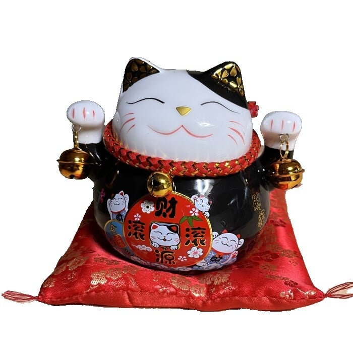招き猫 財源流流 福気満満 AU24025 黒 青 紫 大願成就 招福 まねき猫 ねこ 金運 幸福 風水 運気 必達 目標 夢 置物 置き物 オブジェ