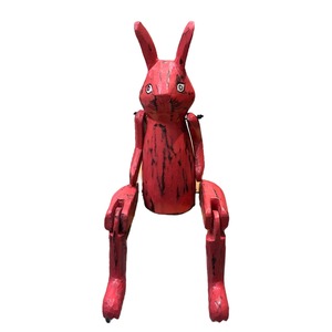 インドネシア製の木製アニマルトイ ピンクのウサギ ガーデニング インテリア オブジェ 置物