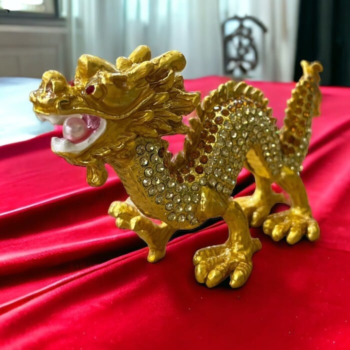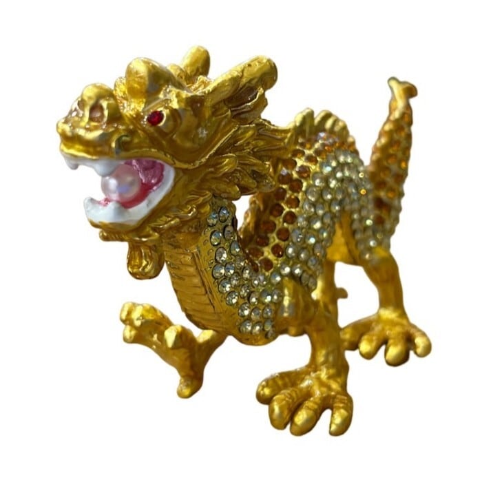 エナメル 龍 ミニ 金 ゴールド ラインストーン コーティング 宝石 龍 竜 ドラゴン ビジュー メタリック キラキラ オブジェ 置き物 ギフト 風水 幸運 20231022Y1-1