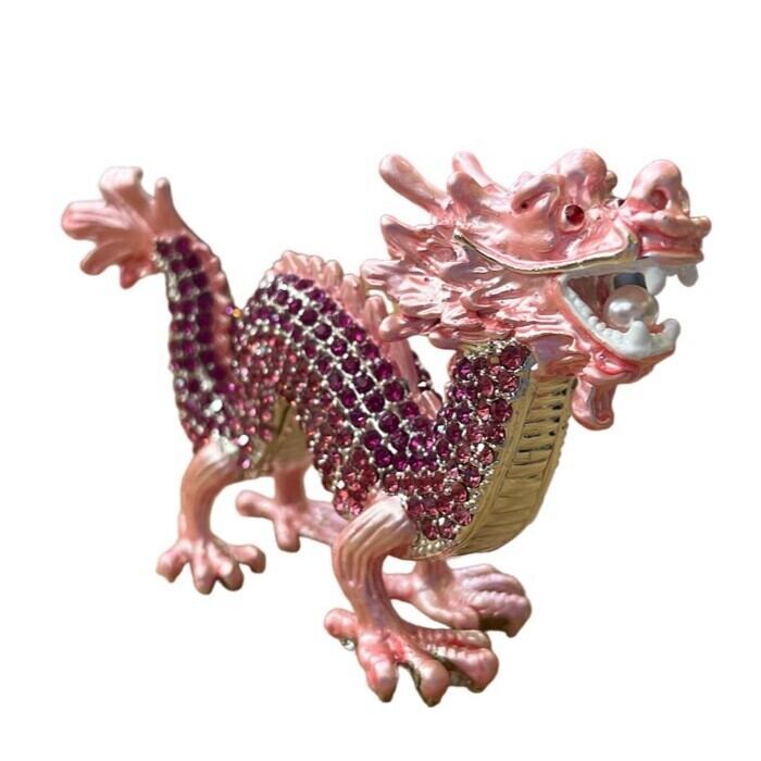 エナメル 龍 ミニ ピンク ゴールド ラインストーン コーティング 宝石 龍 竜 ドラゴン ビジュー メタリック キラキラ オブジェ 置き物 ギフト 風水 幸運 20231022Y1-6