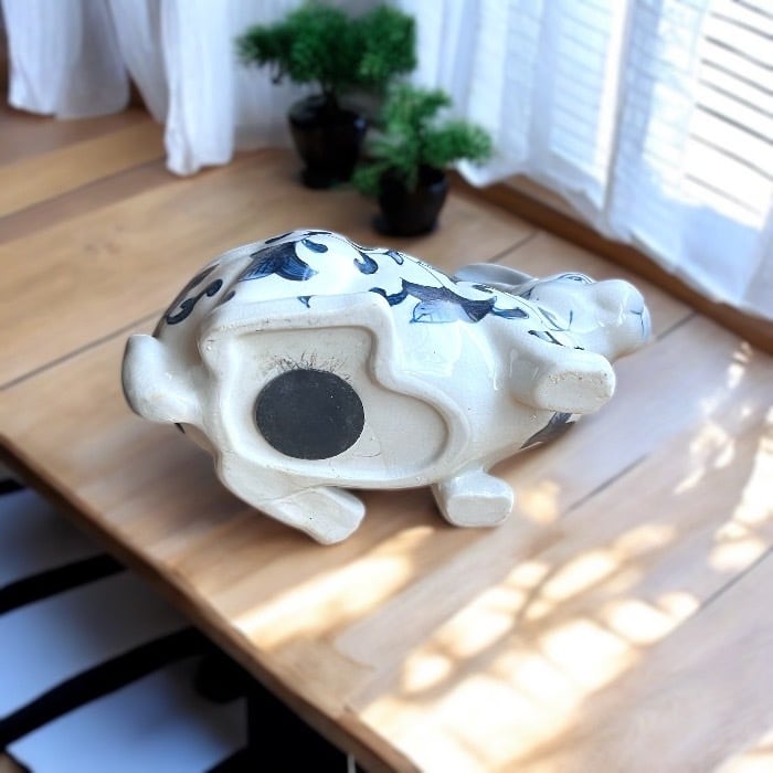 手描き陶器 貯金箱 うさぎ 大 青 兎 ウサギ 上品 シンプル 高級感 オブジェ インテリア 贈り物 ギフト プレゼント